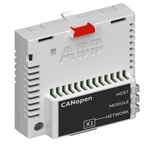The F-series FCAN-01 is a CANopen® adapter module. It fulfils CiA (CAN inAutomation) standard DSP 402 (Device Profile Drives and Motion Control). CANopen device profiles define both direct access to the drive parameters and time critical process data communication.