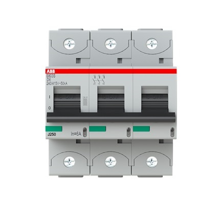 The S803S-D6 is a 3-pole High Performance Circuit breaker with D-Characteristic, with cage terminal and a rated current of 6 A. It is a current limiting device with a maximum breaking capacity of 50kA at 240/415V. It can be used for voltages up to 400/690V and in DC as well. It has two different tripping mechanisms, the thermal tripping mechanism for overload protection and the electromechanic tripping mechanism for short circuit protection. The S803S-D6 complies with IEC/EN 60947-2 and allows the use for residential, commercial and industrial applications. It has numerous of approvals, therefore it can be used worldwide. The extensive range of accessory makes the use of S803S-D6 more comfortable. Due to the fast arc extinction of S803S-D6 your application will be secured.